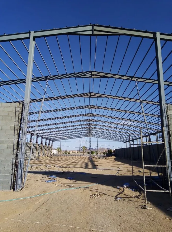 التغطية والتشطيب: تركيب ألواح الصاج أو الساندوتش بانل، وتركيب الأبواب الصناعية الكبيرة والأنظمة الكهربائية.