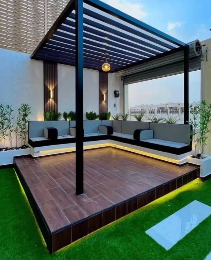 تعتمد على الخطوط المستقيمة والألوان الحيادية مثل الأسود المطفي أو الرمادي الفحمي. تتماشى هذه الجلسات مع المنازل ذات التصميم المعماري الحديث.