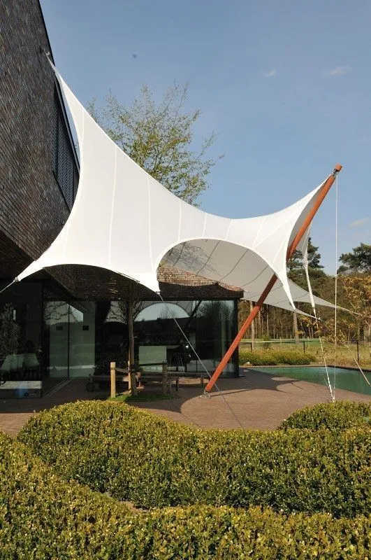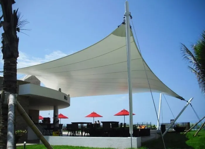 - أنواعها المفضلة: تترصدر مظلات "الكابولي" و"الإكس" القائمة بمواد قماشية مثل PVC الألماني والكوري، أو الـ PVDF المقاوم للحرائق والأتربة.