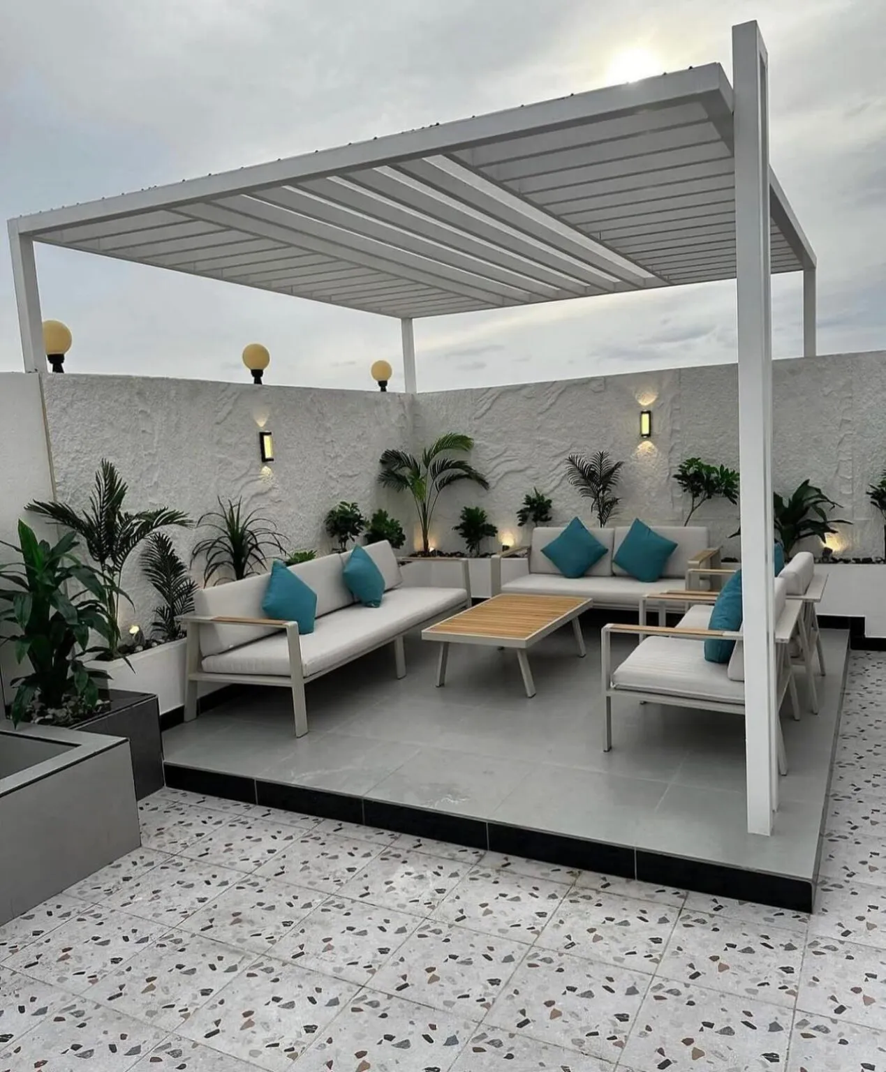 - الجلسات المودرن: تعتمد على الخطوط البسيطة، الألوان المحايدة مثل الرمادي والبيج، واستخدام خامات مثل الألمنيوم المقاوم للصدأ.