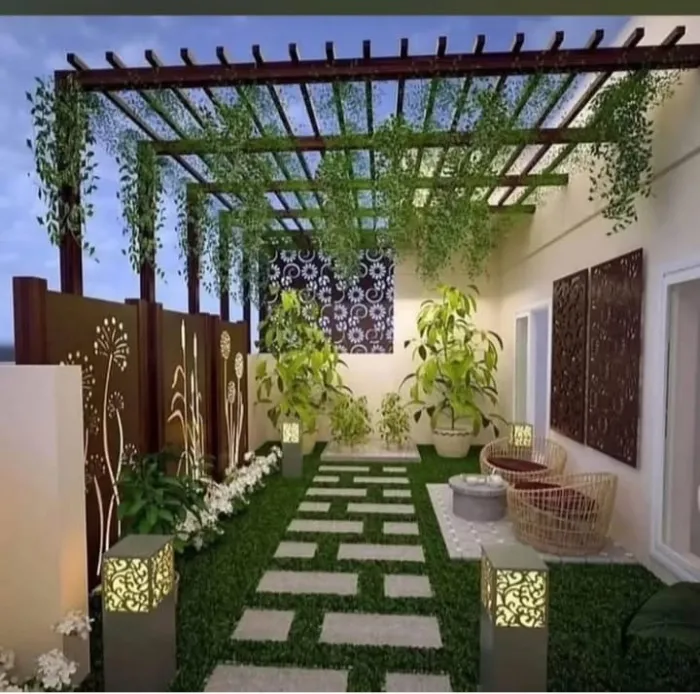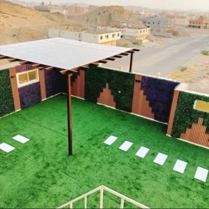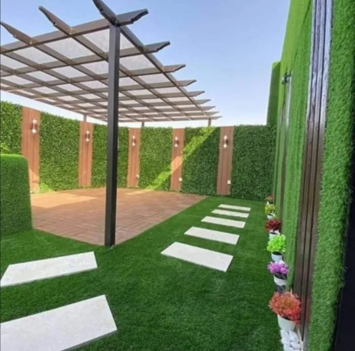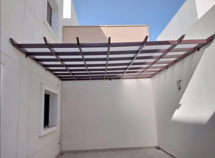 برجولات الشرفات والبلكونات: حتى في الشقق أو الفلل ذات الشرفات الصغيرة، يمكن تركيب برجولات صغيرة لإضافة ظل فعال ومكان لزراعة النباتات المتسلقة.