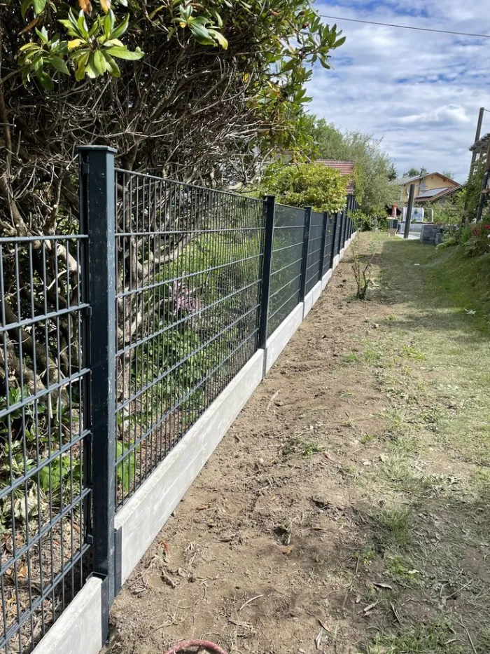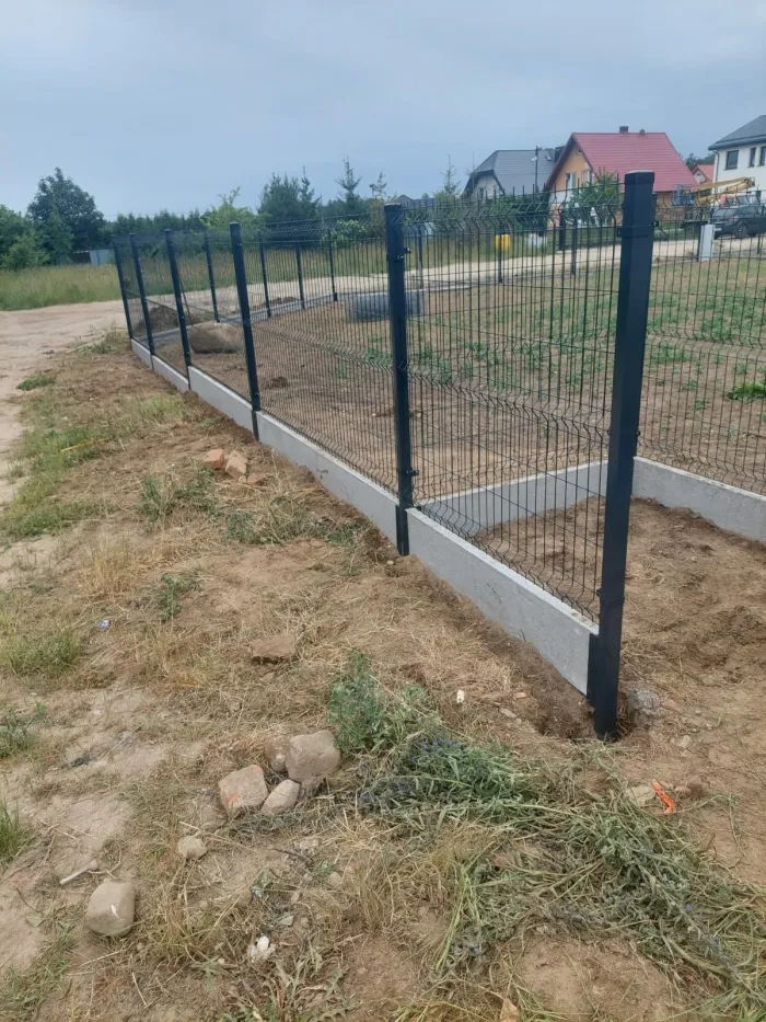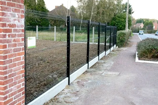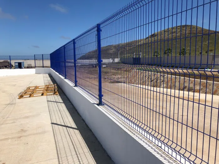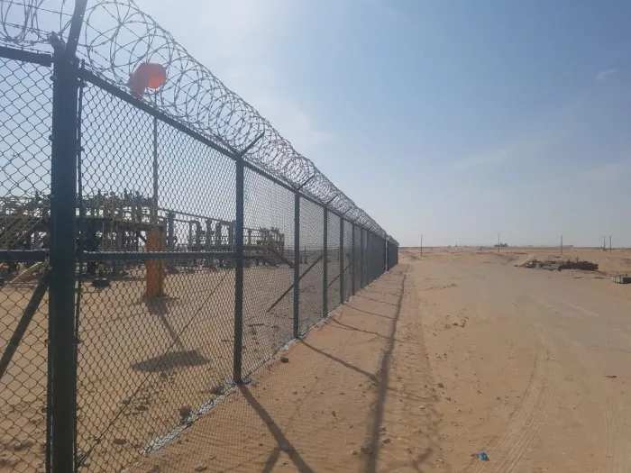 الأعمدة والدعامات: يتم تثبيت الأعمدة المعدنية أو الخرسانية في الأرض بخرسانة قوية لضمان الثبات المطلق للسياج وقدرته على تحمل الشد.